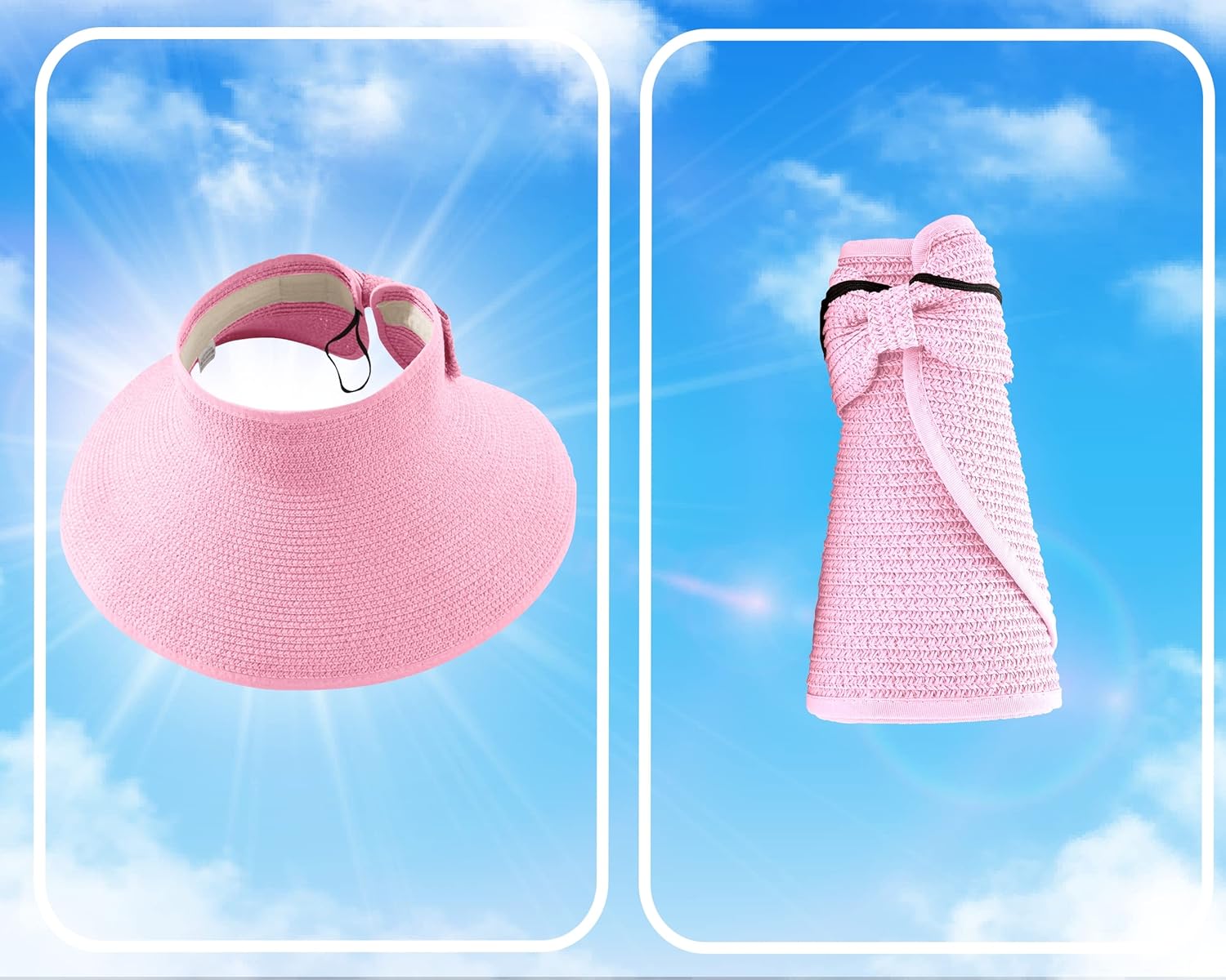 - FOLDABLE & PACKABLE: This Straw Sun Hat is lightweight d and features a roll-up function that makes it very easy to get folded. It is incredibly convenient to carry in your purse, luggage, backpacking, and pocket while still holding its shape, perfect for traveling everywhere you go.